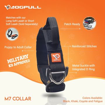 The Dogpull M7 Collar is built for performance, with a metal buckle and integrated D-ring for maximum strength and security. Adjustable to fit puppies through adult dogs, it’s perfect for K9 training, working dogs, and active pets. Durable, reliable, and ready for any mission.