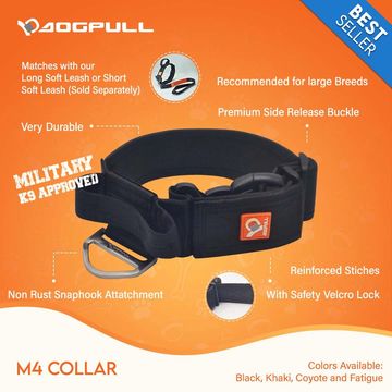 The Dogpull M4 Collar combines comfort and strength, offering a lightweight design that’s still tough enough to handle powerful, large-breed dogs. Its double safety system—featuring a secure plastic buckle and reinforced Velcro closure—ensures the collar stays in place, even during intense activity. Perfect for daily use, training, and working dogs who need reliable gear without the extra weight.